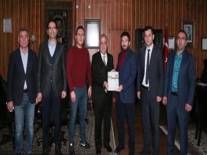 Ziyaretin ardından Başkan Mustafa Karataş, Rektör Çomaklıya Eğitim Bir-Senin hazırladığı Eğitime Bakış 2018 isimli kitabı takdim etti. (iha)