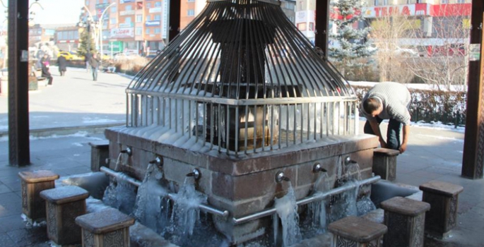 Sabah saatlerinde sıfırın altında 8 dereceleri gören hava sıcaklığı sonrası kentte bulunan şadırvanlar buz kesti.