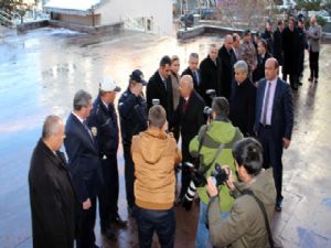 Erzurum Emniyet Müdürü Mehmet Aslan'ı emniyet binası bahçesinde müdür yardımcıları ve şube müdürleri karşıladı.