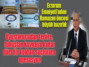 Emniyet Müdürü Mehmet Aslan, "Halkımızın can ve mal güvenliğini korumak ve yasaların öngördüğü çerçevede suç ve suçlularla mücadele etmek için ekiplerimiz gece gündüz büyük bir fedakarlıkla görevlerini yürütüyorlar. Yaklaşan mübarek Ramazan'ın şimdiden huzur ve sağlık içinde geçmesini temenni ediyoruz" dedi. İşte Erzurum Emniyet Müdürlüğü'nün son bir kaç gün içerisinde gerçekleştirmiş olduğu operasyonların özeti: