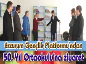 Geçtiğimiz günlerde Erzurum'da faaliyet gösteren 14 gençlik sivil toplum kuruluşunun bir araya gelmesiyle oluşturulan ve başkanlığına ise Mustafa Kahveci'nin seçildiği Erzurum Gençlik Platformu (EGP), ilk ziyaretini 50. Yıl Ortaokulu'na yaptı.