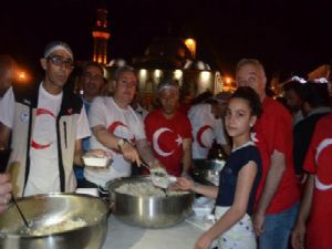 15 Temmuzu 16 Temmuz'a bağlayan gece yaşanan darbe girişiminin ardından, Cumhurbaşkanı Recep Tayyip Erdoğan ile Başbakan Binali Yıldırım'ın halkı sokaklara davet etmesinin ardından tüm Türkiye'de demokrasi nöbetleri tutuluyor. Erzurum'da da 10'uncu günün geride kaldığı demokrasi nöbetleri hız kesmeden devam ediyor. Her siyasi partiye mensup, siyasiler, vatandaşlar ve STK'lar demokrasi nöbetlerine destek veriyor. Erzurum Gençlik Hizmetleri ve Spor İl Müdürlüğü de Cumhuriyet Caddesine açtığı stantta vatandaşlara, su, şapka ve Türk bayrağı dağıtırken, önceki gecede nohutlu pirinç pilavı ikram etti. Erzurum Gençlik Hizmetleri ve Spor İl Müdürü Fuat Taşkesenligil, hafta sonu yapılan etkinlikle bin 500 dolayında vatandaşa nohutlu pilav ikram ettiklerini söyledi. Taşkesenligil ile şube müdürleri, ilçe müdürleri, Gençlik Merkezleri Müdürleri ve personel vatandaşa kendi elleri ile pilav ikram etti. Erzurum GHSİM Müdürü Fuat Taşkesenligil, "10 gündür GHSİM olarak demokrasi nöbetlerimiz devam ediyor. Cumhurbaşkanımız Recep Tayyip Erdoğan, evinize dönün diyinceye kadar demokrasi nöbetlerine devam edeceğiz. Kurum olarak demokrasinin ve Milli İrade'nin galip geldiği bugünlerde sportif faaliyetlerimiz ve tesisleşme çalışmalarımızda tam gaz devam ediyor. Demokrasi nöbetine katılan tüm vatandaşlara ve kurum çalışanlarımıza teşekkür ediyorum" dedi.