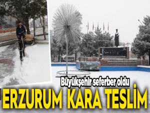 Erzurumda dün gece yarısı başlayan yoğun kar yağışı kenti beyaza bürürdü. Sabah erken saatlerden itibaren belediye ekipleri yollarda ve kaldırımlarda karla mücadele çalışması yaparken, esnaf da iş yerlerinin önünü temizledi. Kar araç ve yaya trafiğini olumsuz etkiledi.