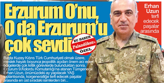 Başta Kuzey Kıbrıs Türk Cumhuriyeti olmak üzere, meslek hayatı boyunca jeopolitik açıdan önem arz eden bölgelerde çok kritik görevlerde bulunduktan sonra, Erzurum 9.Kolordu Komutanlığı’na atanan Tümgeneral Erhan Uzun, önümüzdeki ay yapılacak YAŞ toplantısında, korgeneralliğe terfi edecek paşalar arasında en üst sıradaki isimlerden biri…