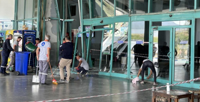 İzmir’de ESADAŞ firmasına ait yolcu otobüsü, perona yanaştığı esnada freninin boşalması üzerine duramadı ve yolcu beklemede alanındaki kapılara çarptı. Kazada ölü ve yaralının olmadığı belirtildi.