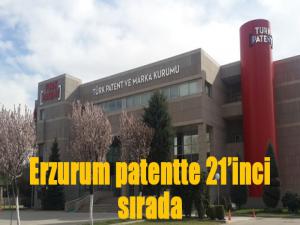 Erzurum Türkiye illeri patent başvuru sayısı yüksekliği bakımından Türkiye illeri sıralamasında 21inci sırada yer aldı. Ülkede patent başvuru ve üretiminin en yüksek olduğu 21 il, İstanbul, Ankara, Bursa, İzmir, Manisa, Kocaeli, Konya, Gaziantep, Sakarya, Antalya, Eskişehir, Adana, Tekirdağ, Kayseri, Mersin, Samsun, Denizli, Balıkesir, Kahramanmaraş, Aydın, Erzurum olarak kaydedildi.