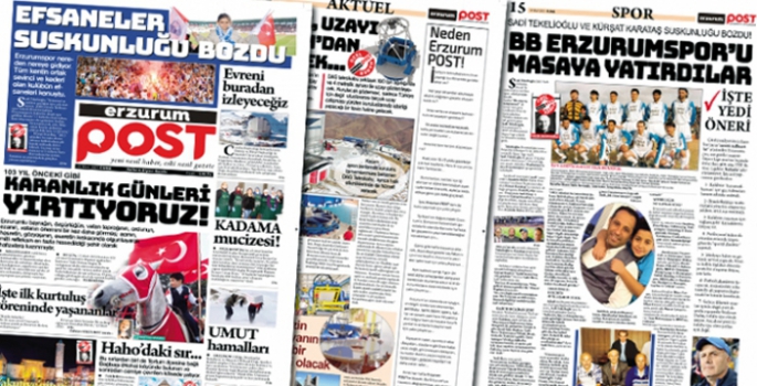 Eskisi gibi hafta boyunca ailecek, doya doya gazete sayfalarını çevirme keyfini, Erzurum’a yeniden tattırmak için yola çıkıyoruz Aynı kaliteli içeriği 7 gün 24 saat dijital cihazlardan dünyanın neresinde olurlarsa olsun tüm Erzurumlulara ulaştırabilmek için yola çıkıyoruz