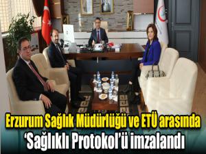 Erzurum Teknik Üniversitesi İktisadi İdari Bilimler Fakültesi Sağlık Yönetimi bölümü ve Sağlık Bilimleri Fakültesi Hemşirelik Bölümü öğrencilerinin mesleki ders uygulamalarını Sağlık Müdürlüğüne bağlı sağlık tesislerinde yapmalarına ilişkin protokol, İl Sağlık Müdürü Dr. Gürsel Bedir ve ETÜ Rektörü Prof.Dr. Bülent Çakmak tarafından imzalandı.