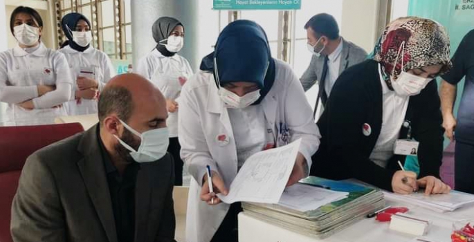 Şehir hastanesinde açılan organ bağış standında ilk bağışı hastane yönetimi tam kadro ile yaparak bağışa uygun tüm vatandaşları “her bağış bir hayattır “sloganı ile organ bağışına davet etiler.