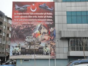 SGK Erzurum İl Müdürlüğü çalışanları tarafından askerlerimizin acılarını paylaşmak ve toplumdaki hassasiyeti canlı tutmak ve ordumuza destek olmak amacıyla İl Müdürlüğü binasına dev afiş asıldı.
