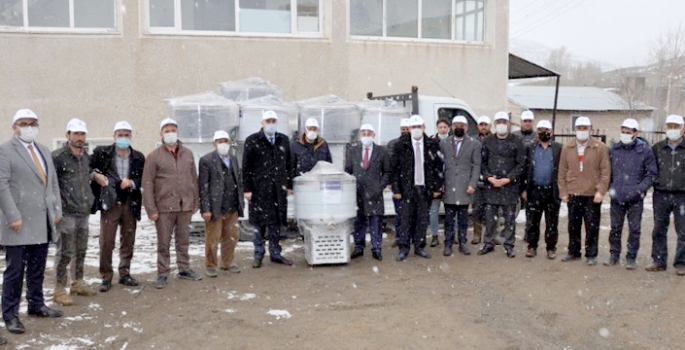 Süt soğutma tanklarını teslim etmek için üreticilerin ahırlarına giden görevliler çiftçilere tankın çalışması hakkında bilgilendirme yaptı.