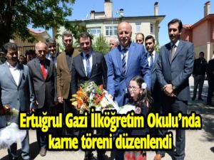 Aziziye İlçesi Ertuğrul Gazi ilköğretim Okulunda düzenlenen karne töreni, saygı duruşunda bulunulması ve İstiklal Marşının okunmasıyla başladı.