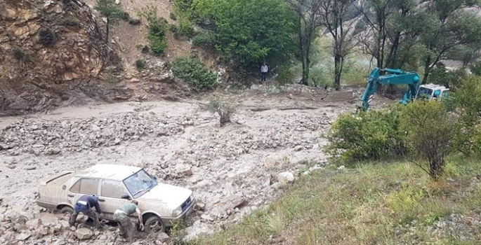 Ev ve ahırlara dolan suyu ise vatandaşlar kendi imkanlarıyla boşaltmaya çalışırken dolu yağışı da ekili alanlara zarar verdi.