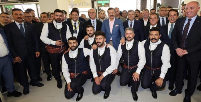 Başkan Özakalın ziyarette, TOBB Başkanı Hisarcıklıoğlu ve Antalya TB Yönetim Kurulu Başkanı ve TOBB Yönetim Kurulu Üyesi Ali Çandır’a Erzurum’un coğrafi tescilli yöresel lezzetlerinden Hıngel, su böreği ve kadayıf dolmasından ikram etti. Hisarcıklıoğlu stanttan ayrılırken, Başkan Özakalın, Erzurum GGK Başkanı İsmail Suci ve KGK Başkanı Kübra Alioğulları ile fotoğraf çektirdi.