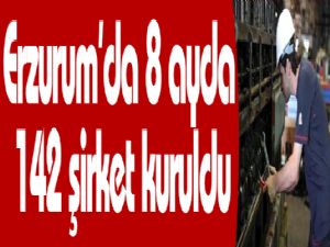 8 aylık süreçte Erzurum'da 142, KUDAKA istatistik Bölgesinde 215, Kuzeydoğu Anadolu istatistik Bölgesinde 390, Doğu Anadolu Bölgesinde de bin 279 yeni şirket faaliyete geçti. Erzurum'un kurulan şirket payı KUDAKA istatistik Bölgesinde yüzde 66,04, Kuzeydoğu Anadolu istatistik Bölgesinde yüzde 36,41, Doğu Anadolu Bölgesinde ise yüzde 11,1 olarak gerçekleşti.