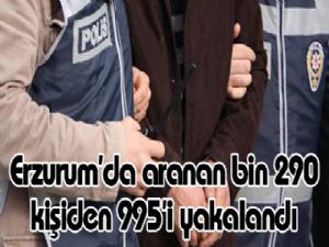 Erzurum Emniyet Müdürlüğü'nce 2017 yılı içerisinde çeşitli suçlardan aranan 1290 kişiden 995'i yakalandı.