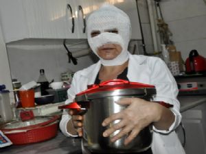 Erzurum'da restoran işletmecisi 2 çocuk annesi Şeminur Erzurum, 3 gün önce patates pişirdiği düdüklü tencereyi suya tutup havasının boşalmasını bekledi. İçerideki havanın tamamen boşaldığını düşünen Erzurum, ardından tencerenin kapağını açtı. Tencerede tamamen boşalmayan havanın basınçla dışarı çıkması sonucu Erzurum'un yüzünün büyük bölümünde ikinci, vücudunun bir kısmında da birinci derece yanıklar oluştu.