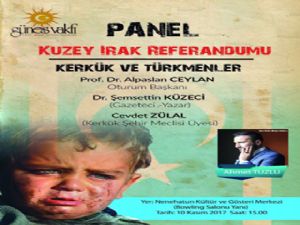 Güneş Vakfı Başkanlığı'nca Erzurum'da "Kuzey Irak Referandumu, Kerkük ve Türkmenler" konulu panel düzenlenecek.