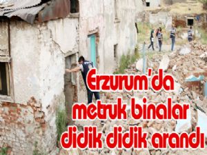 Erzurum Emniyet Müdürlüğü Asayiş Şube Müdürlüğü ve Narkotik Büro ekipleri tarafından ildeki çeşitli adreslere operasyon yapıldı. İl genelinde yürütülen çalışmalar kapsamında daha önceden tespit edilen metruk binalara da operasyon düzenledi. Tüm metruk, sahipsiz ya da içinde yaşayan olmayan bütün binalar Erzurum polisi tarafından didik didik arandı. Metruk binalarda uyuşturucu madde üzerine denetimler yapılırken, binaların fotoğrafları çekildi. Binaların kullanılıp kullanılmadığı tespit edilerek tutanağa geçirildi.