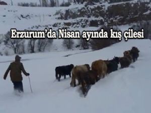 Nisan ayının 11'inde kış şartlarının yaşandığı Erzurum'da, hayvancılıkla uğraşan çiftçiler zorluk çekiyor. Tabiatın kar örtüsüyle kaplandığı Erzurum'un Hınıs ilçesinde hayvanlarını dereden su içmeye götüren vatandaşlar, yaşadıkları zorlukları cep telefonuna kaydederek sosyal medyada paylaştılar.