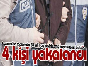 Erzurum'da çeşitli suçlardan toplamda 28 yıl 1 ay kesinleşmiş hapis cezası bulunan 4 kişi yakalandı.