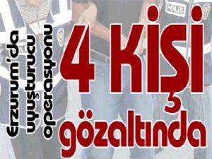 Emniyet Genel Müdürlüğü Narkotik Suçlarla Mücadele Dairesi Başkanlığı koordinesinde Türkiye genelinde uyuşturucu operasyonu başlatıldı. Erzurum'da da düzenlenen operasyonda 4 şüpheli gözaltına alındı.
