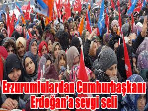 Kar yağışı ve soğuk havaya aldırış etmeyen binlerce Erzurumlu, Erdoğana sıcak sevgi selinde bulundu.