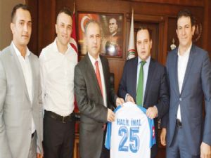 Beraberinde BB Erzurumspor Genel Sekreteri Zafer Aynalı, Yönetim Kurulu Üyeleri Vedat Aydın, Ozan Kuduban, Muammer Aydın, Muammer Koçak, Cumhuriyet Başsavcısı Halil İnal'ı makamında ziyaret ederek yeni görevinde hayırlı olsun temennisinde bulundu. Yönetim Kurulu Üyeleri, Cumhuriyet Başsavcısı Halil İnal'a 'Halil İnal' yazılı 25 numaralı mavi-beyaz forma hediye etti.