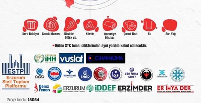 Başkan Güvenli yaptığı açıklamada şunları söyledi: “İHH, Deniz Feneri, MEMUR-SEN, MÜ SİAD, Ebu İshak Vakfı, Vuslat, ERZİMDER, TYB Erzurum, ER-İHYA-DER, Cansuyu Derneği, İD DEF, İMH, EHAD, Emin Eğitim, AGD, MGV, SAFA Vakfı, Hayrat Vakfı, Cihannuma Derneği, Erzurum Uluslararası Öğrenci Derneği, Verenel Derneği, İnsan Vakfı, gibi kuruluşlar; Pazartesi sabahında “Şimdi Birlik Zamanı” sloganı ile başlattıkları yardım ve kurtarma çalışmalarında tarih yazıyorlar.