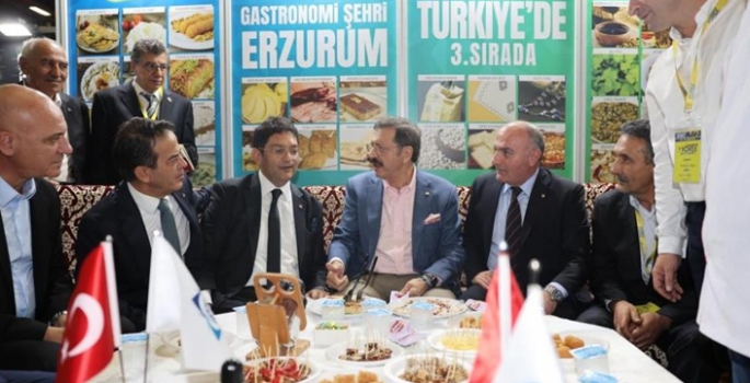 Fuar alanında, Ticaret Borsası (ETB), Erzurum Ticaret ve Sanayi Odası ( ETSO), Kuzeydoğu Anadolu Kalkınma Ajansı (KUDAKA) ile Erzurum Büyükşehir Belediyesi tarafından oluşturulan Erzurum standını ziyaret eden, ve Kayserili olan,Türkiye Odalar ve Borsalar Birliği (TOBB) Başkanı Rifat Hisarcıklıoğlu ve diğer protokol üyelerine; Erzurum Ticaret Borsası Yönetim Kurulu Başkanı ve TOBB Genel İdare Kurulu Üyesi Hakan Oral, Meclis Başkanı Yavuz Güney,Yönetim Kurulu Başkan Vekili Eletdin Ürüşan, Erzurum Ticaret ve Sanayi Odası Yönetim Kurulu Başkan ve TOBB Yönetim Kurulu Üyesi Saim Özakalın ile Meclis Başkanı Gökhan Yılmaz, Kuzeydoğu Anadolu Kalkınma Ajansı Genel Sekreteri Oktay Güven tarafından Coğrafi İşaret belgeli Erzurum Mantısı, Erzurum Su Böreği ve yöresel ürünler, İspir Kuru Fasulyesi, Kadayıf Dolması, Civil peynir ile Göğermiş Peynir ve Peynir Helvası ikram edildi.