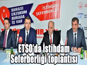 Erzurum Valiliği, Erzurum Ticaret ve Sanayi Odası (ETSO), SGK İl Müdürlüğü ve İŞKUR İl Müdürlüğü tarafından düzenlenen İstihdam konulu toplantıda, kamu kurumları, STK temsilcileri ve basın mensupları, Cumhurbaşkanı Recep Tayyip Erdoğanın çağrısı üzerine başlatılan İstihdam Seferberliği 2019un işverenlere sağladığı teşvik ve destekler konusunda bilgilendirildi.