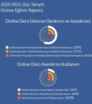 Online eğitimin en önemli avantajlarından biri olan senkron olarak gerçekleştirilen derslerin kayıtlarının sonradan izlenmesi, Erzurum Teknik Üniversitesi bünyesindeki sistem ile sağlanmış olup güz yarıyılı boyunca etkin bir şekilde kullanıldığı belirlendi.