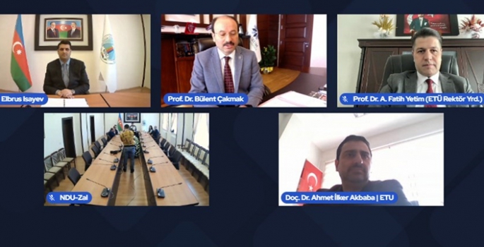 Çevrimiçi olarak düzenlenen imza törenine ETÜ Rektörü Prof. Dr. Bülent Çakmak, Nahçıvan Devlet Üniversitesi Rektörü Prof. Dr. Elbrus İsayev ve ETÜ Rektör Yardımcısı Prof. Dr. Ali Fatih Yetim ile İktisadi ve İdari Bilimler Fakültesi öğretim üyelerinden Doç. Dr. Ahmet İlker Akbaba katıldı.