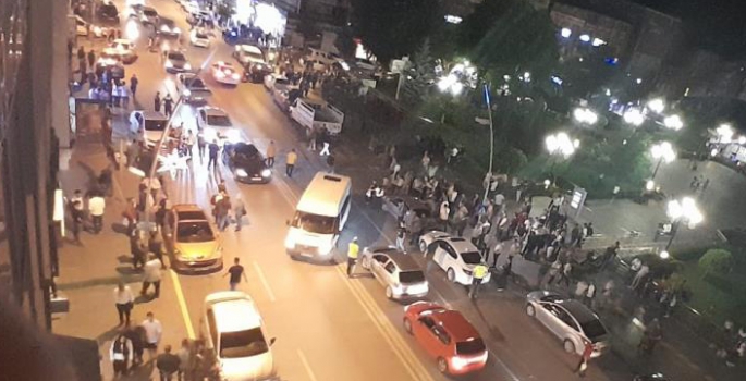 Aileleriyle birlikte Cumhuriyet Caddesi’ni kapatan ve polise mukavemet eden şahıslara emniyet güçleri müdahalede bulundu.