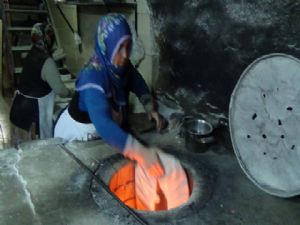 Erzurum'da bir fırında çalışan 5 ev hanımı yaptıkları kete, lavaş türü ekmeklerle erkek ustalara taş çıkartıyorlar.