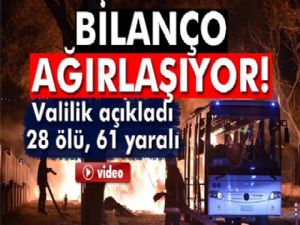 Ankara Valiliği, Başkent'te akşam saatlerinde yaşanan patlamaya ilişkin hayatını kaybedenlerin sayısını açıkladı. Valilik, "Patlamada 28 kişinin hayatını kaybettiğini, 61 kişinin yaralandığını" bildirdi.