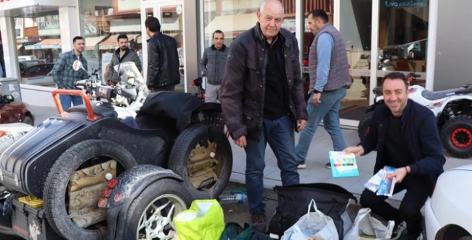 Siyah İnci Motosiklet Grubu Başkanı ve Oltulu esnaf Kaan Yavuz, projeyi duyduklarında çok etkilendiklerini belirterek, "Bay Patrice’yi ilçemizde misafir etmekten büyük mutluluk duyduk. Kendisi Fransa’dan Japonya’ya kadar sürecek, yaklaşık yedi ay devam edecek bir yolculuğa çıkmış. Bu süre boyunca, daha önce boya kalemiyle tanışmamış çocuklara 4 bin adet kalem hediye etmek istiyor. Biz de arkadaşlarımızla birlikte elimizden gelen desteği verdik. Teknik problemlerini çözdük ve bugün uğurlayacağız. Bu anlamlı projesinden dolayı kendisini tebrik ediyor, yolunun açık olmasını diliyoruz" dedi.