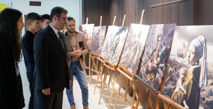 Erzurum Raci Alkır Güzel Sanatlar Lisesi Görsel Sanatlar Öğretmeni Yakup Dursun, İsrail'in Gazze'de uyguladığı soykırıma dikkat çekmek için dünyaca ünlü ressamların eserlerini yeniden tasarladı.