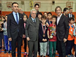 Beyoğlu'nda düzenlenen Spor Mevsimi Geleneksel Çocuk Oyunları ödül törenine katılan Beyoğlu Belediye Başkanı Ahmet Misbah Demircan, Mendil Kapmaca ve Seksek oyunlarında dereceye giren öğrencilere kupa ve madalyalarını verdi.