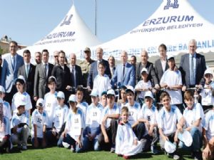 Törende Erzurum Valisi Seyfettin Azizoğlu, Erzurum Milletvekilleri İbrahim Aydemir, Mustafa Ilıcalı ve Orhan Deligöz bisiklete binerek stadyumda tur attı.