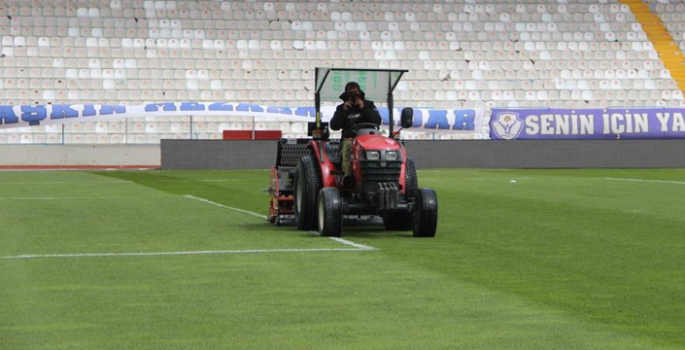 Stadyum zemininde incelemeler sonrası ekipler tarafından çalışmalar yapıldı.