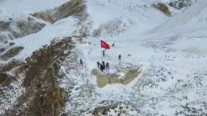 Erzurum’un Şenkaya ilçesine bağlı Göreşken Mahallesi’nde, Türk bayrağı köyün en yüksek noktasına göndere çekildi.