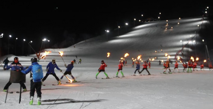 Özellikle gece kayağı yapan kayak severler meşaleli kayak gösterisi ve ledli kayak gösterilerini de yakından izleme fırsatı buluyor.