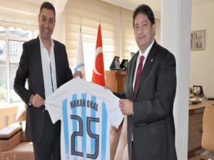 Erzurum Ticaret Borsasına ziyaret düzenleyen UYAFA CUP Koordinatörü Ali Güney, UYAFA CUPun çalışmaları ve turnuvanın Erzurumda yapılması için yapılan çalışmalar hakkında Erzurum Ticaret Borsası Yönetim Kurulu Başkanı Hakan Orala bilgiler verdi.