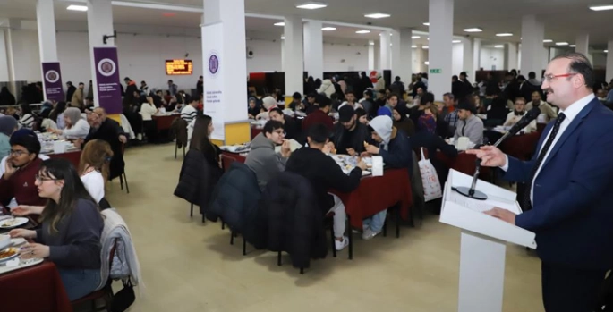Kuran-ı Kerim tilaveti ile başlayan program, ezanın okunmasıyla birlikte dualar eşliğinde açılan oruçlarla devam etti. İftar sonrasında konuşan Rektör Hacımüftüoğlu, Ramazan ayının birlik ve beraberliği pekiştiren manevi atmosferine vurgu yaparak şu ifadeleri kullandı: "Ramazan, paylaşmanın ve dayanışmanın en güzel örneklerini sergilememize vesile olan mübarek bir aydır. Bugün, siz değerli öğrencilerimizle aynı sofrayı paylaşmaktan büyük bir mutluluk duyuyorum. Sizlerin akademik, sosyal ve kültürel gelişimi için tüm imkanlarımızı seferber ediyoruz."