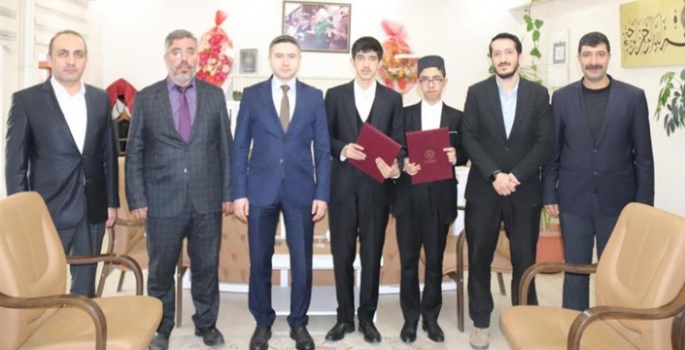 Hafızlığını tamamlayan öğrencilere İlçe Kaymakamı Emre Zeyrek tarafından belgeleri verildi.