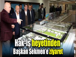 Ziyaretin sonunda Başkan Sekmen, Hak-İş Genel Başkanı Mahmut Arslan ve beraberindeki heyete Erzurum Büyükşehir Belediyesinin proje ve yatırımlarına ilişkin olarak bilgiler aktardı. Sekmen, Erzurumu her alanda cazibe merkezi haline getirmek gibi bir hedefimiz var. Çalışanlarımızla gece-gündüz koşuyor, koşturuyor ve çalışıyoruz. Bu hedefimize de, inşallah çalışanlarımızın yol arkadaşlıkları, emekleri ve bizim için her damlası mücevher kadar değerli olan alın terleri sayesinde ulaşacağız dedi.