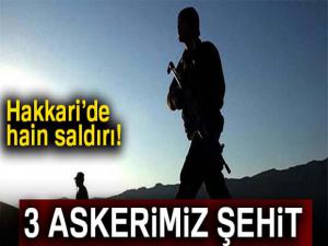 Hakkari Valiliğinden yapılan açıklamada, "Şemdinli ilçesine bağlı Aktütün Bayrak Tepe ile Dağlıca arasında karayolları yol yapım faaliyetinin emniyetini alan hudut birliğimize Kuzey Irak Basyan Khala Dağı bölgesinden saat 18.00 sıralarında güdümlü füze atılmış ve 3 askeri personel şehit olmuş 1 personel yaralanmıştır" denildi.(iha)