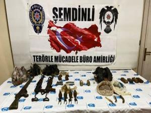 Valilik tarafından yapılan açıklamada,"Şemdinli ilçemizde PKK/KCK Terör Örgütünün faaliyetlerinin deşifre edilmesi ve engellenmesine yönelik yapılan çalışmalar kapsamında, Özel Harekat Şube Müdürlüğü personelimizin arama tarama faaliyetleri sırasında kaya dibinde toprağa gömülü vaziyette PKK/KCK Terör örgütü mensuplarına ait olduğu değerlendirilen 1 adet G-3 Piyade Tüfeği, 2 adet AK-47 Otomatik Silahına ait şarjör, 30 Adet AK-47 Silahına ait 7,62*39 Çapında Fişek, 22 Adet G-3 Silahına ait 7,62*51 Çapında Fişek Patlayıcı Yapımında Kullanılan Değişik Nevi ve Miktarlarda Patlayıcı Madde, 4 Adet El Bombası, 2 Adet Parça ve Basınç Etkili Bomba (Soda Şişesine Hazırlanmış), 4 Pil Bloğu ele geçirilmiş, bahse konu malzemeler Şemdinli İlçe Emniyet Müdürlüğüne intikal ettirilerek gerekli tahkikata başlanmıştır" denildi.(iha)