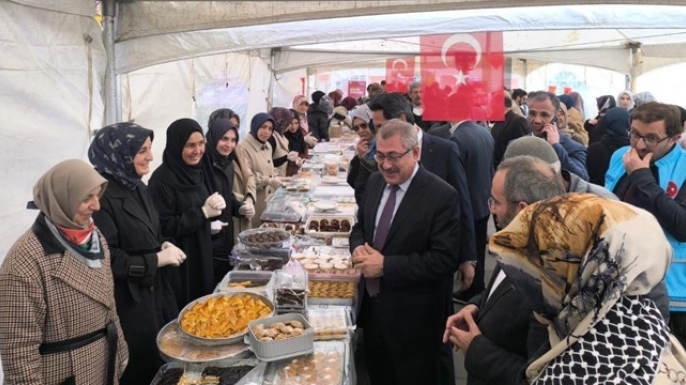 Merkez ilçe müftülüklerinin destekleriyle açılan hayır çarşısından elde edilecek gelir, Filistin'li mazlum insanların yararına kullanılacak. Müftü Yaşar Çapçı, hayır çarşısının açılmasında emeği olan ilçe müftülükleri, Kur'an kursu öğreticileri, öğrenciler ve emeği geçen herkese teşekkür etti.